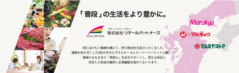「丸久」「マルミヤストア」「マルキョウ」といった3つのスーパーマーケット運営会社を中心とした、グループ連合体。地域に根差しつつ広域展開し、PB開発や食品流通の効率化を進める西日本有数のスーパーグループ。