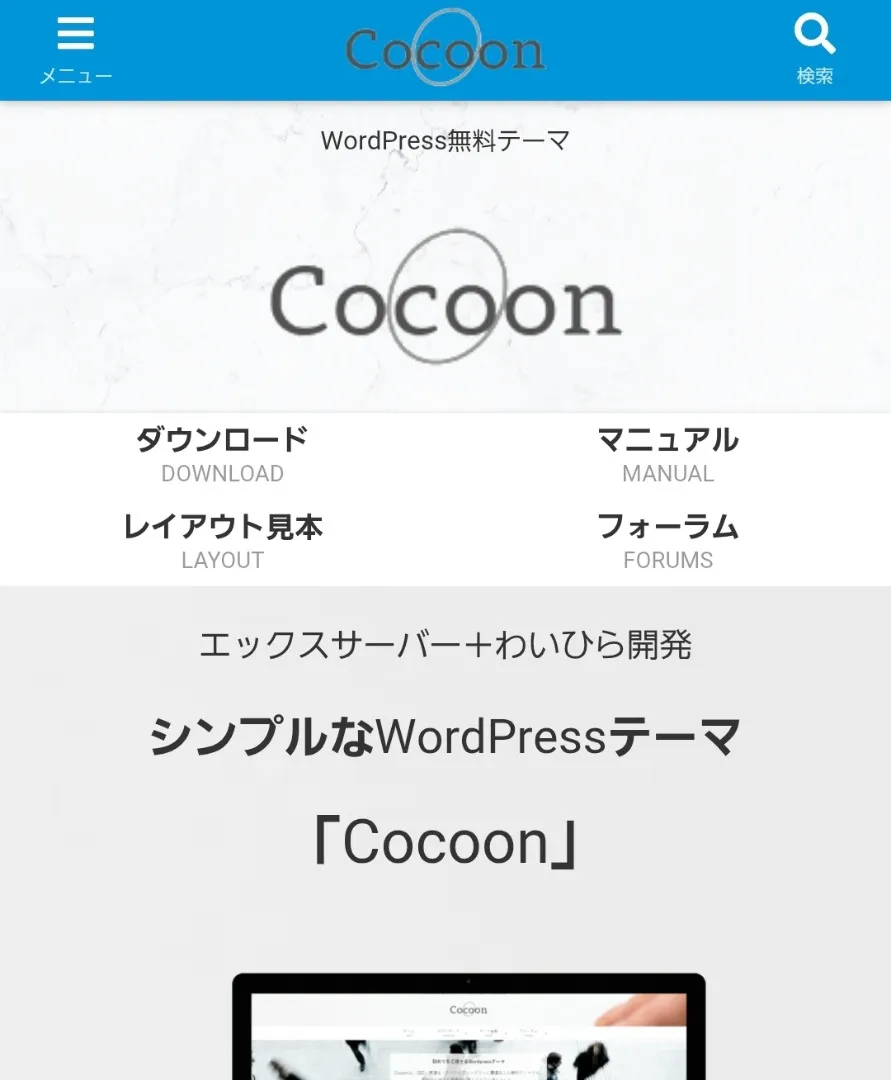 では、Cocoonのトップページの「ダウンロード」ボタンをクリックしてください。