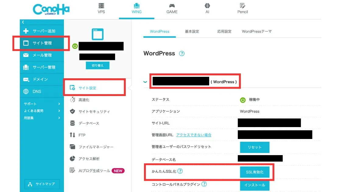次は、ConoHa WINGの管理画面で行う、SSL化という初期設定について説明します。