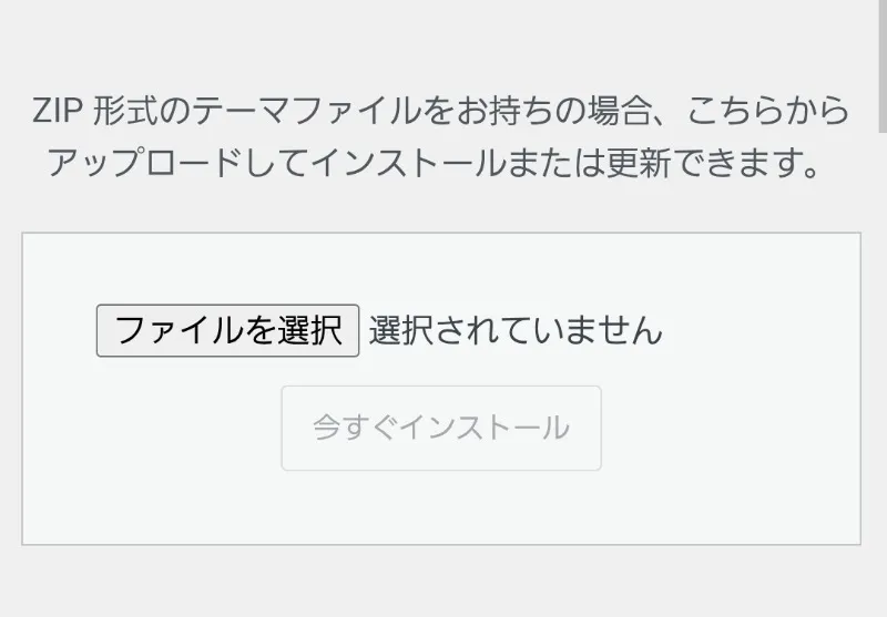 次に、「テーマのアップロード」をクリックし、「ファイルを選択」を押してください。